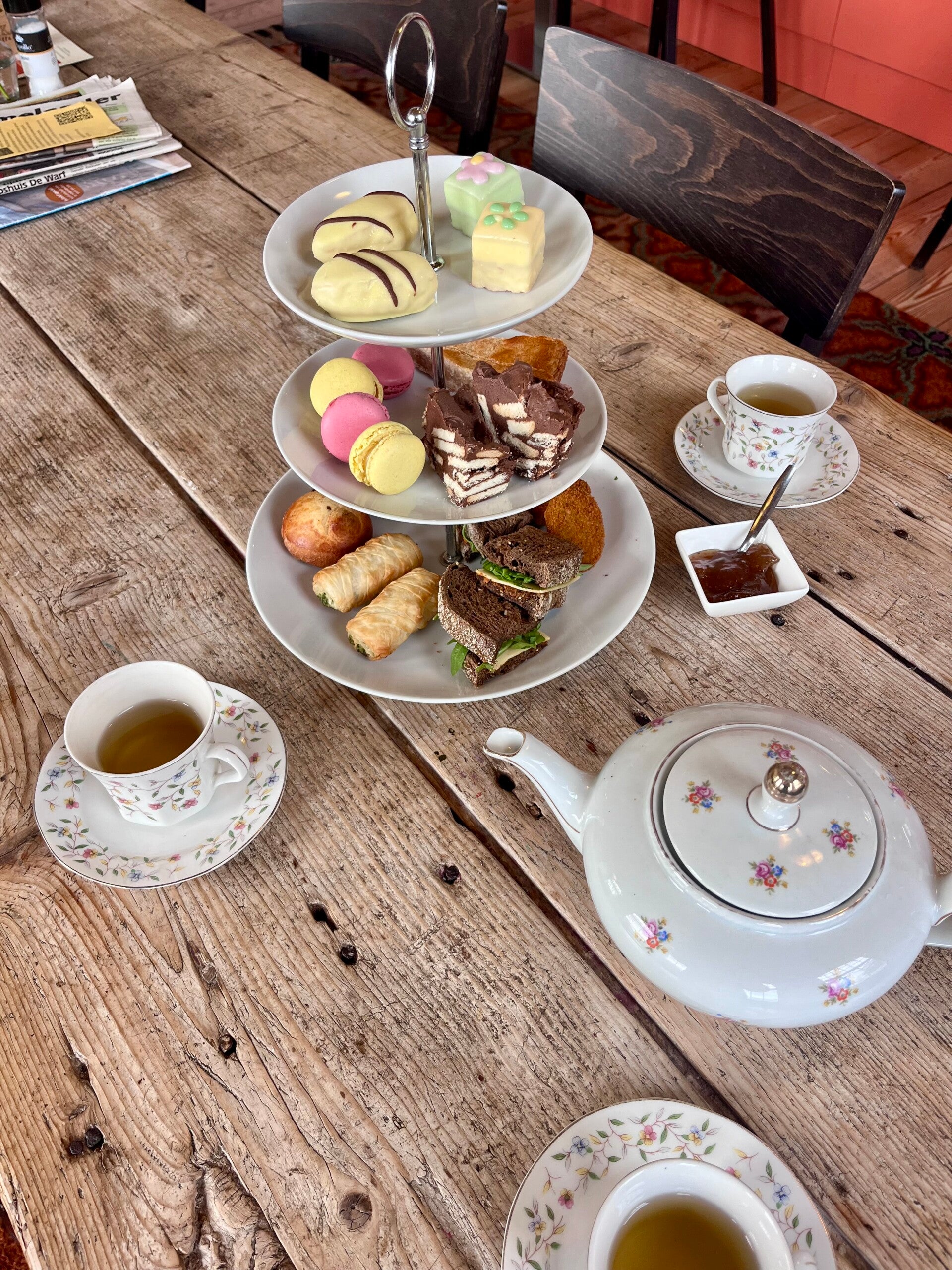 Voor gezelschappen vanaf 4 personen bieden wij een High Tea aan. Voor €23,50 per persoon krijgt u diverse zoete lekkernijen, hartige hapjes en uiteraard onbeperkt thee.